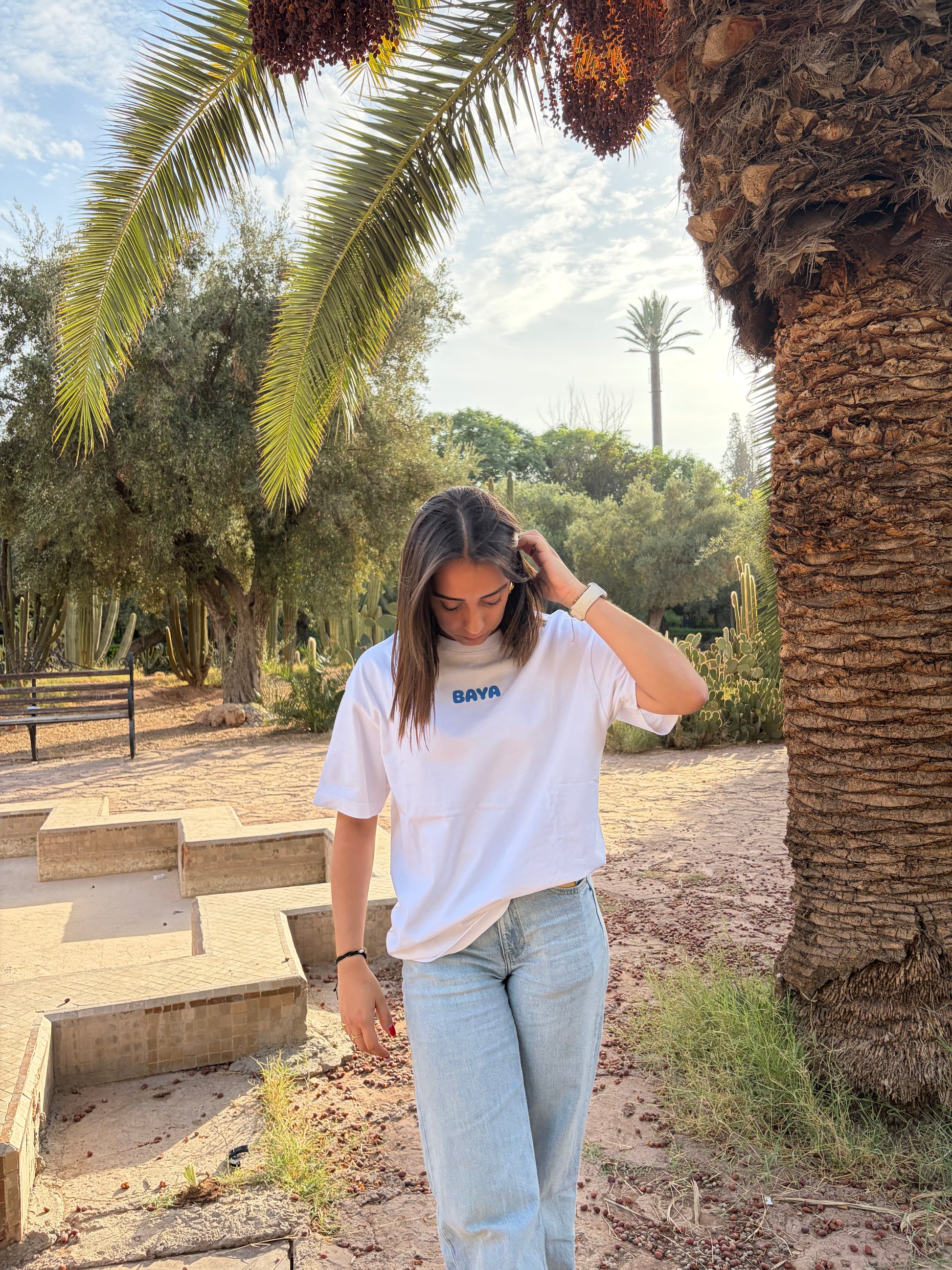 Portez-le légèrement loose, rentré à moitié dans un jean droit ou un pantalon ample pour un look effortless. Pour préserver la qualité : laver à 30°C sur l’envers, sécher à l’air libre, repasser à basse température en évitant l’imprimé.